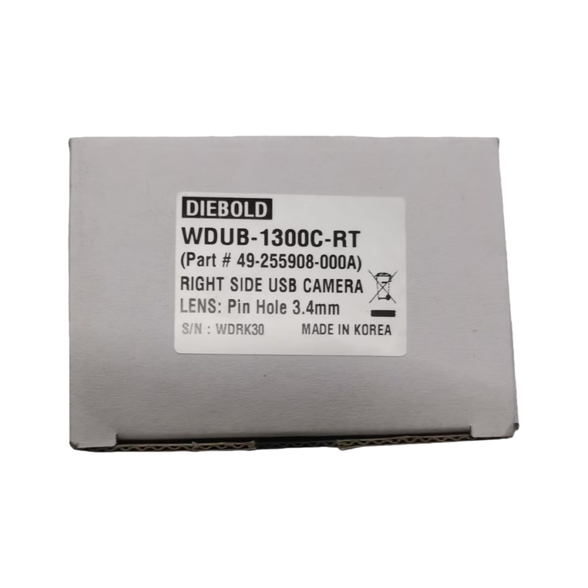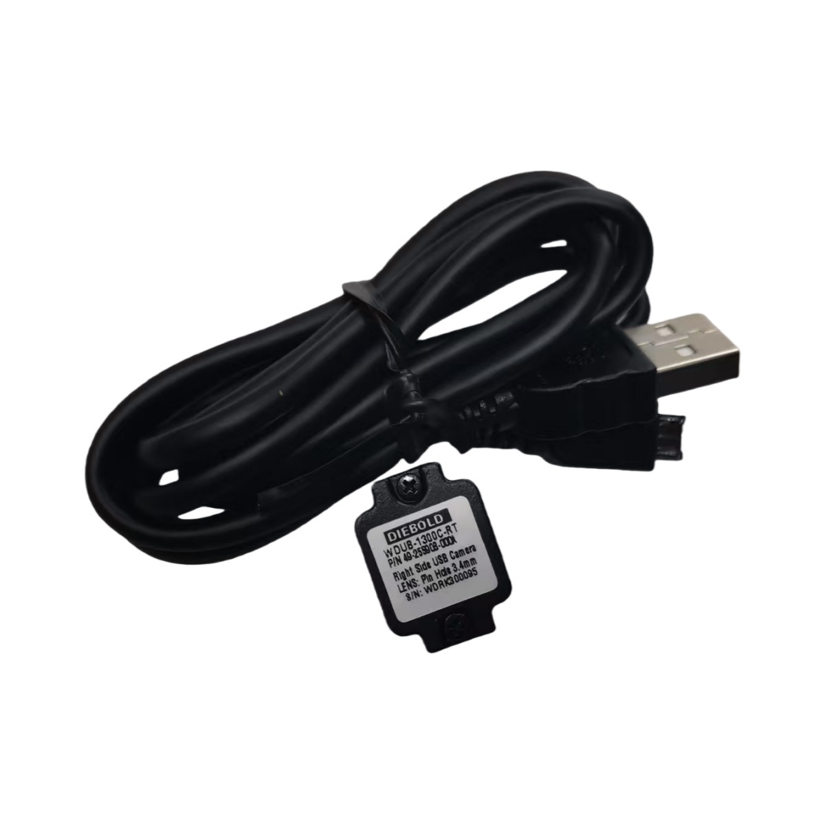 Diebold WDUB-13DDC-RT Micro Camera – Nova e Original, Conector USB do Lado Direito. Esta câmera ATM dedicada é um componente genuíno da Diebold, identificado pelo número de peça 49255908000A e número de série WDRI300095, garantindo originalidade e garantia de qualidade.