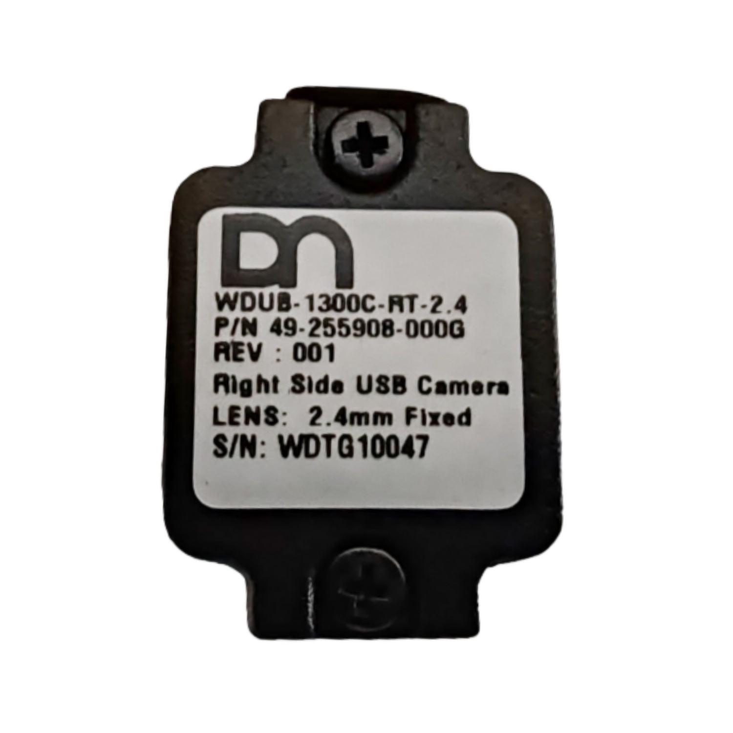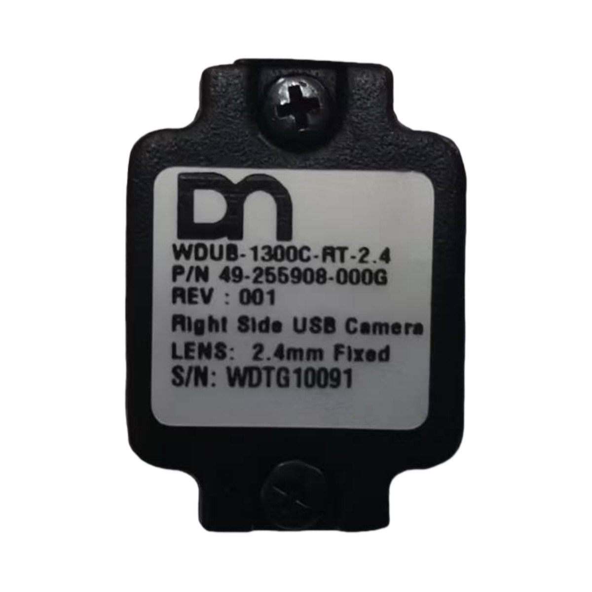 Principais especificações: Tipo de lente é de 2,4 mm, otimizado para monitoramento de segurança ATM com ampla cobertura e imagem nítida; Interface é USB do lado direito,permitindo a transmissão estável de dados e a instalação simples sem modificar a estrutura ATM originalO número de série (S/N: WDTG10) garante a rastreabilidade dos lotes de produção.
